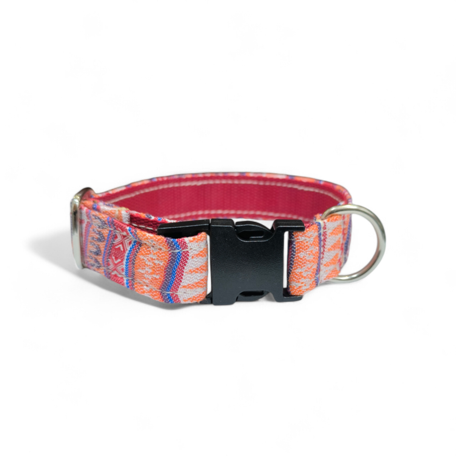 Collar regulable confeccionado en tela de alta calidad, interior con nailon resistente y cómodo. Disponible para todo tipo de perros. Se puede fabricar con diferentes acabados de fornituras (oro, plata, negro, etc.) y opción de personalizar con el logo de tu negocio.