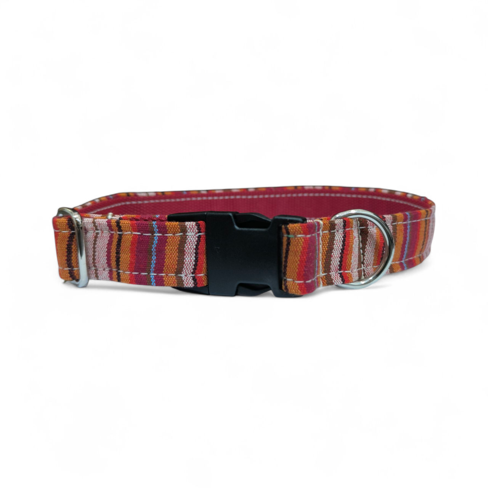 Collar regulable confeccionado en tela de alta calidad, interior con nailon resistente y cómodo. Disponible para todo tipo de perros. Se puede fabricar con diferentes acabados de fornituras (oro, plata, negro, etc.) y opción de personalizar con el logo de tu negocio.