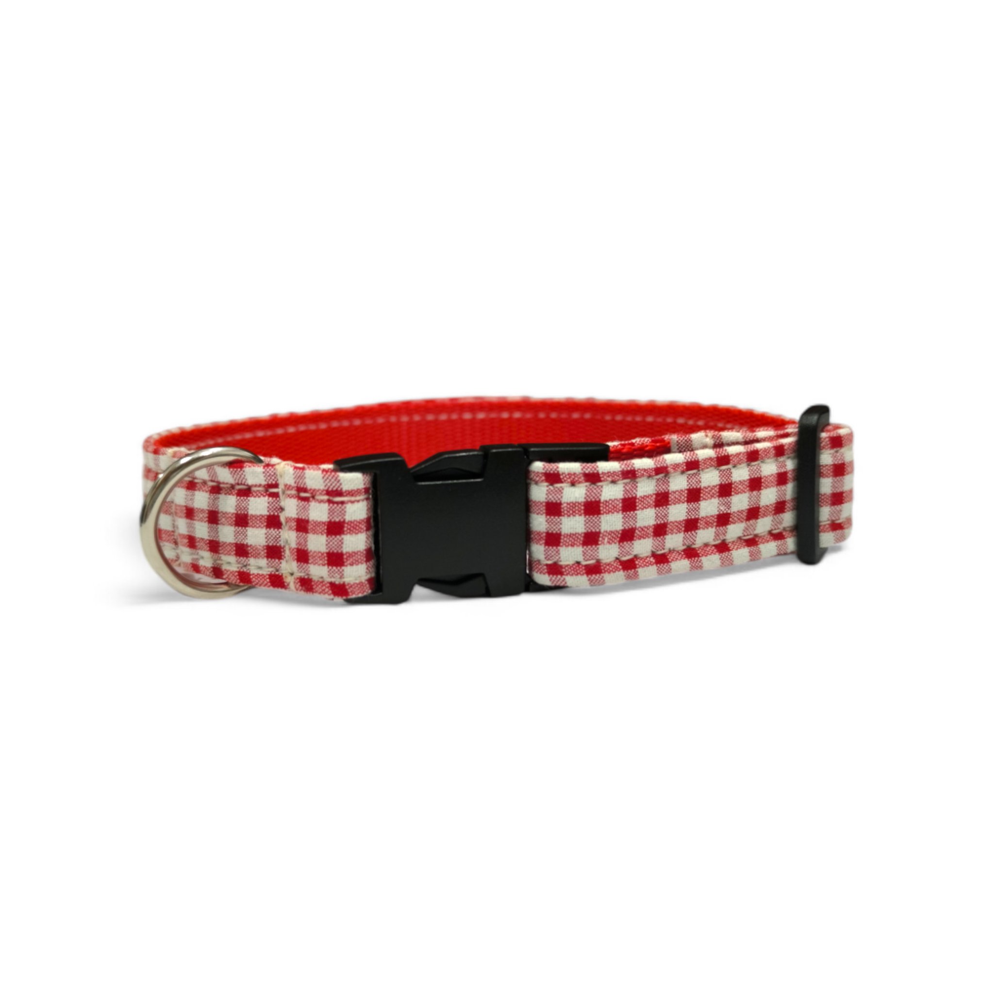 Collar regulable confeccionado en tela de alta calidad, interior con nailon resistente y cómodo. Disponible para todo tipo de perros. Se puede fabricar con diferentes acabados de fornituras (oro, plata, negro, etc.) y opción de personalizar con el logo de tu negocio.
